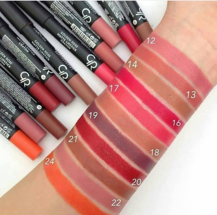 رژلب مدادی مات از برند گلدن رز با فرمولاسیون مات و مخملی عرضه شده است .بافت این مداد بسیار نرم و سبک می باشد که رژ لب را با پوششی مخملی یکدست و طبیعی بر روی لب ها می دهد .همچنین ترکیباتی از ویتامین ای و مواد مرطوب کننده ای دارد .که برای لب ها بسیار مغذی و مانع ایجاد خشکی و پوسته پوسته شدن در آن ها می شود